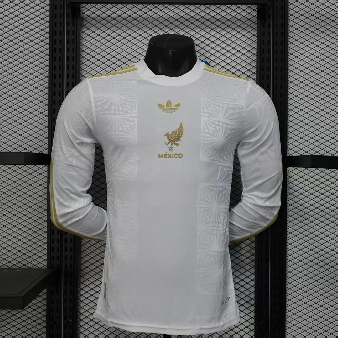 2025-26 Mexico White and Gold Long Sleeve Jersey - Player Edition